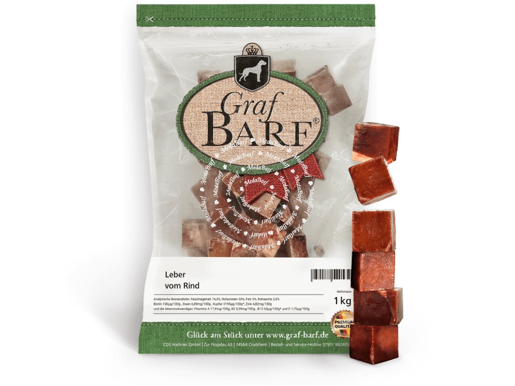 Hovězí játra Graf Barf jsou jednou z nejdůležitějších surovin v BARF jídelníčku. Obsahují vysoké množství klíčových živin ve vysoce koncentrované formě – biotin, železo, měď, zinek a životně důležité vitaminy A, B2, B12 a D. Díky nízkému obsahu tuku a vysokému podílu kvalitních bílkovin jsou játra nepostradatelnou součástí vyvážené stravy.