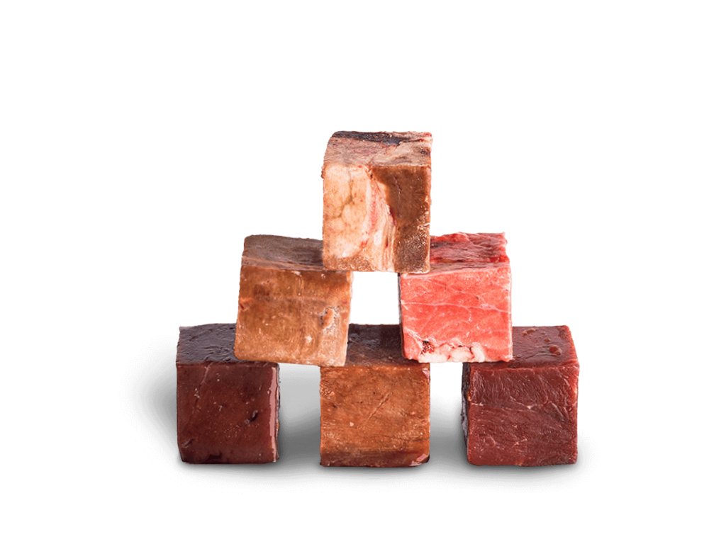 Různé části hovězího masa se zmrazují ve velkých blocích čistého hovězího masa a poté se nakrájejí na kostky. Vnitřnosti se poté rozmixují. Vyvážená směs hovězích drobů, která zahrnuje hovězí játra , hovězí srdce , hovězí ledviny , hovězí plíce a hovězí slezinu , ještě více usnadňuje přípravu potřebných drobů. Jednoduše otevřete sáček a vyjměte kostky. Váš chlupatý kamarád je tak plně zásoben cennými vitamíny a minerály.