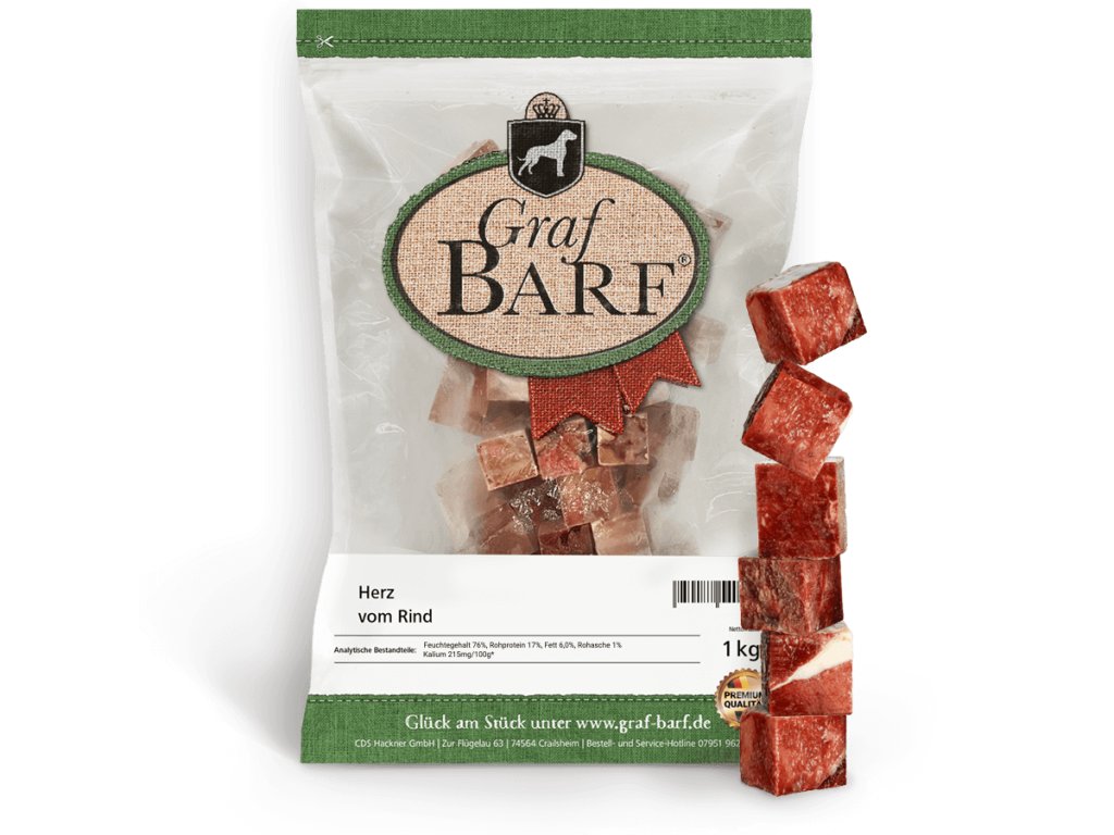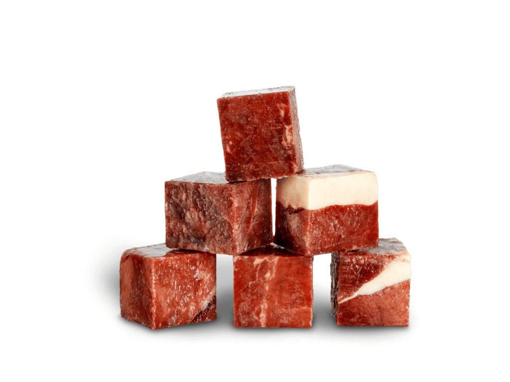 Srdce je velmi libové svalové maso. To není žádné překvapení, vzhledem k tomu, že se jedná o aktivní a dobře vyvinutý sval. Srdce je navíc bohaté na draslík a taurin, které poskytují životně důležité živiny ve vyvážené syrové stravě. Hovězí srdce se mrazí celé ve velkých blocích a poté se nakrájí na kostky.