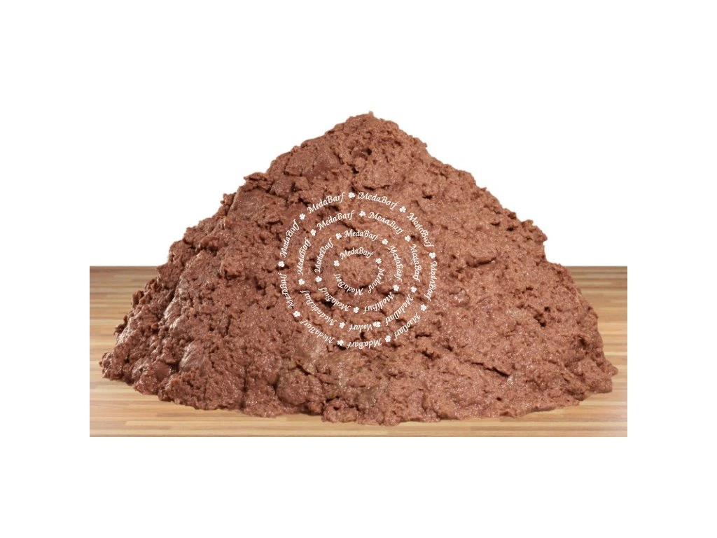 93,2 % nasekané koňské maso, 5 % bramborová mouka, 1 % kuchyňská sůl, 0,5 % rozmarýn, 0,3 % prášek z kyseliny citronové