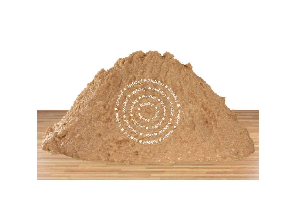 93,2 % nasekaný losos, 5 % bramborová mouka, 1 % kuchyňská sůl, 0,5 % rozmarýn, 0,3 % prášek z kyseliny citronové