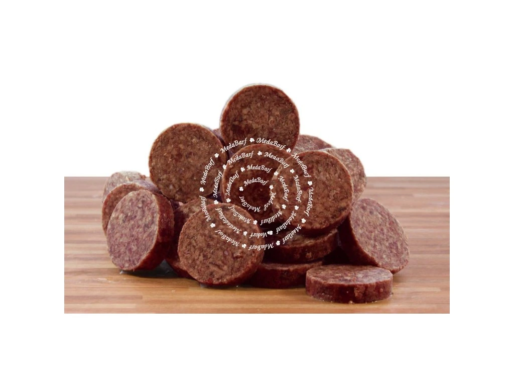 50 % zelených hovězích dršťků a 50 % hovězího jícnu obsahujícího chrupavku; jemně mleté