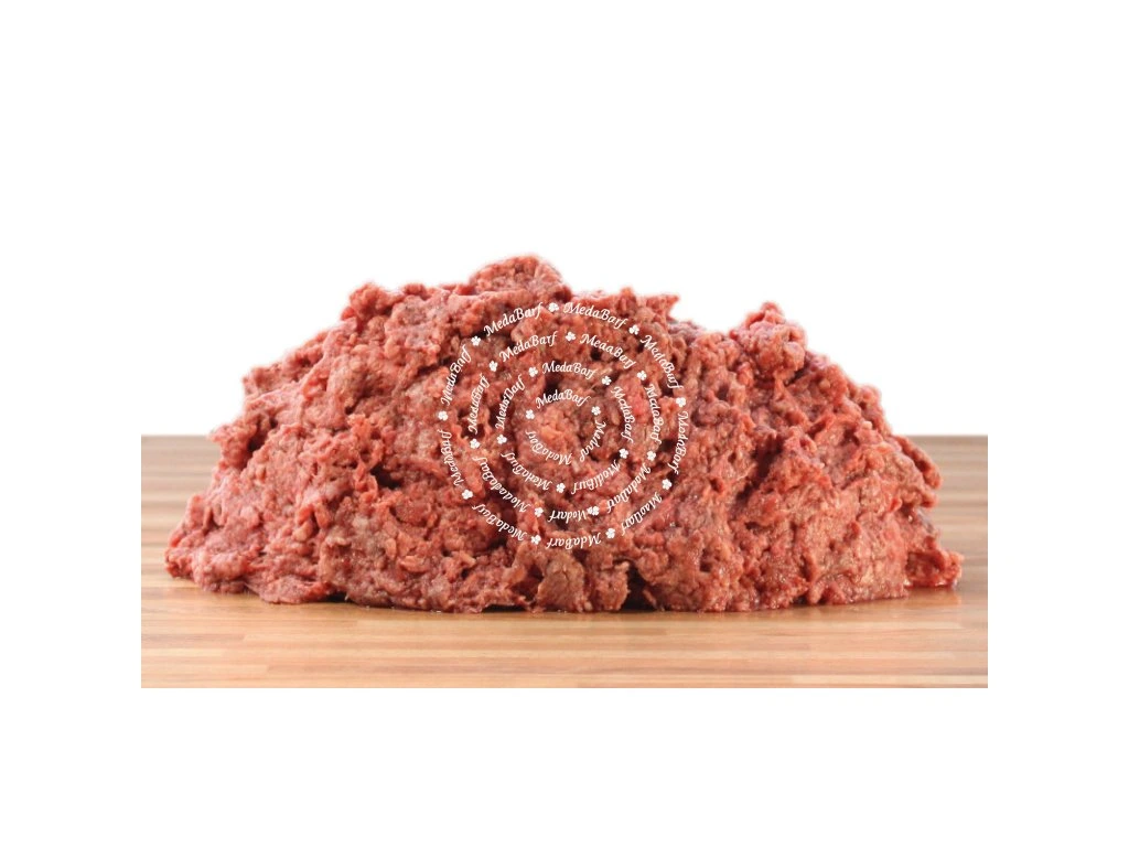 50 % zelený hovězí bachor a 50 % mleté hovězí maso z hltanu s obsahem chrupavek; jemně mleté