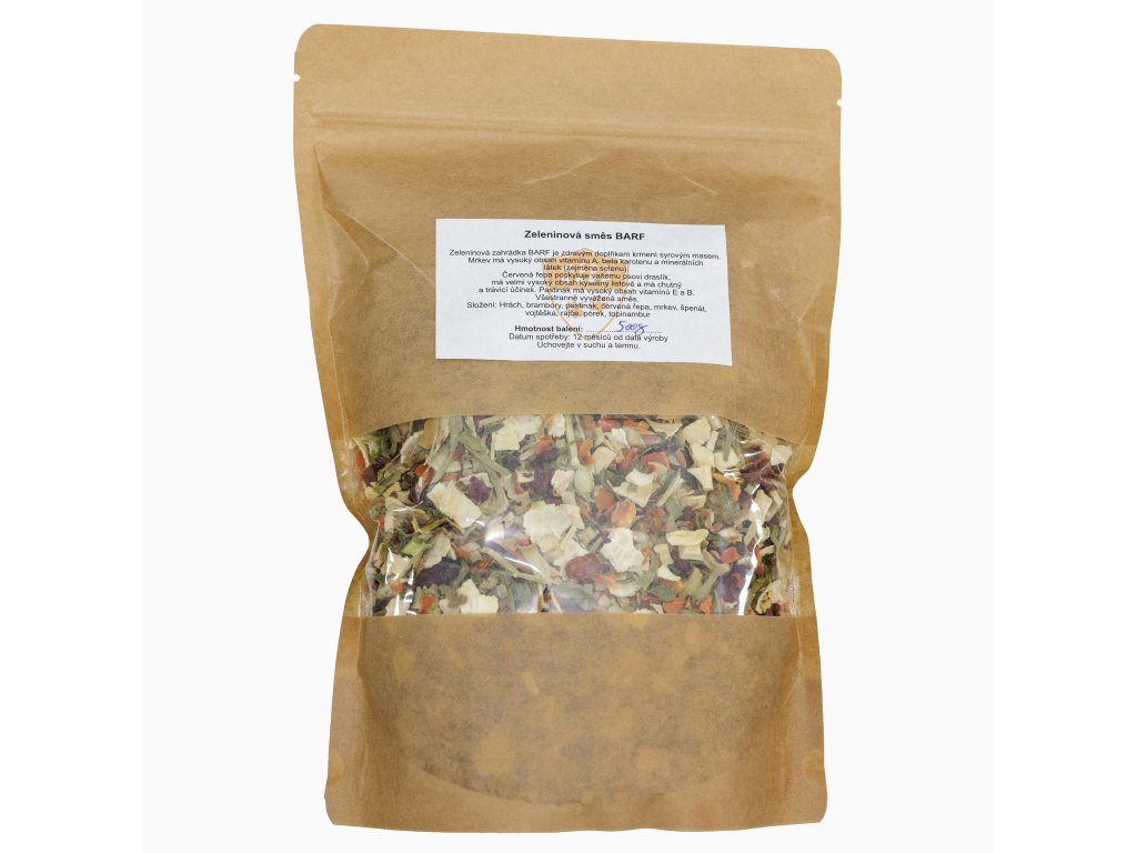 Vyvážený rostlinný doplněk pro krmení syrovým masem. Tato zeleninová směs je ideální pro obohacení BARF jídelníčku o vlákninu, vitamíny a minerály. Mrkev dodává beta-karoten a selen, červená řepa je bohatá na draslík a kyselinu listovou, pastinák přináší vitamíny E a B. Všestranně vyvážená receptura podporuje trávení, vitalitu a celkovou kondici psa.