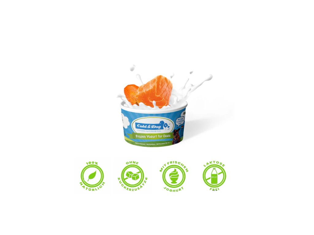 Skvělý úlovek pro milovníky vody. Spojení čerstvého bezlaktózového jogurtu, smaženého divokého lososa a křupavé mrkve tvoří lahodnou a výživnou pochoutku, která potěší každého chlupáče. První psí zmrzlina v berlínském stylu zaujme svou zdravou recepturou, pečlivě vybranými ingrediencemi a láskyplným řemeslným zpracováním.