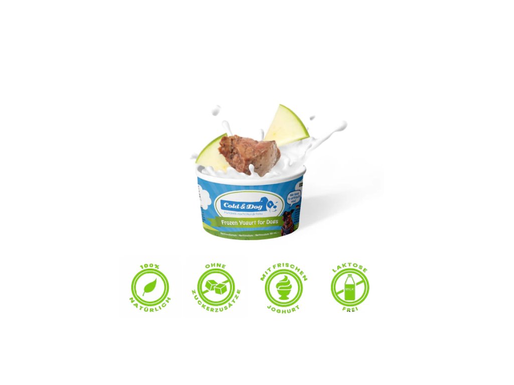 Přesně to pravé pro chlupaté gurmány s výjimečnou chutí. Spojení čerstvého bezlaktózového jogurtu, bio smažených kuřecích jater a sladkého jablka tvoří neodolatelně lahodnou pochoutku. Tato osvěžující zmrzlina v berlínském stylu zaujme svou zdravou recepturou, vybranými ingrediencemi a láskyplným řemeslným zpracováním.